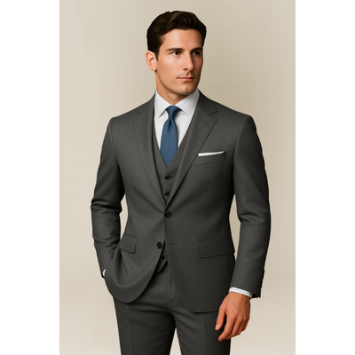 Dreiteiliger Herrenanzug in Dunkelgrau und Beige