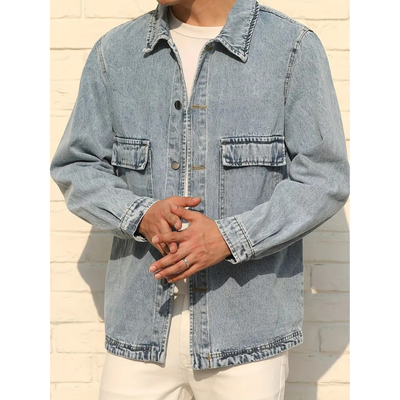 Herren Denimjacke – Hellblau mit Knopfverschluss