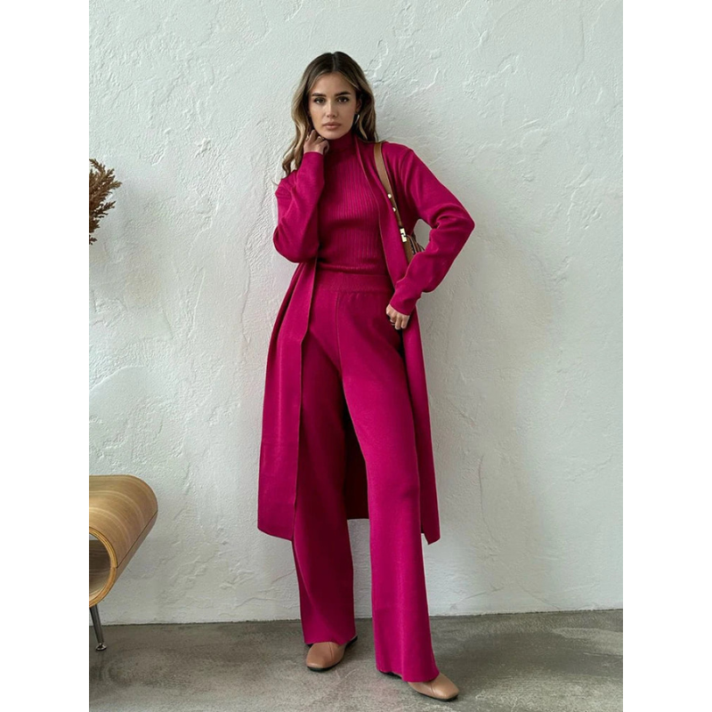 Entdecken Sie die perfekte Balance zwischen Komfort und Eleganz mit diesem dreiteiligen Damen-Set. Die Kombination aus einem stilvollen Top, einer bequemen Hose und einer passenden Jacke verleiht Ihnen mühelos eine raffinierte Ausstrahlung.
