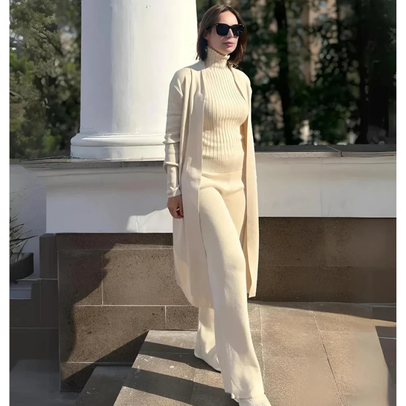 Kompletter Look: Drei stilvolle Kleidungsstücke, die perfekt zusammenpassen.