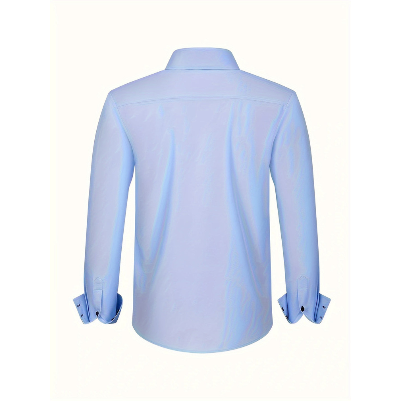 Elegantes Herrenhemd in Hellblau – die perfekte Kombination aus Raffinesse und modernem Tragekomfort. Dieses doppelreihige Design mit klassischen Kontrastmanschetten verleiht Ihnen eine luxuriöse Ausstrahlung, ideal für formelle Anlässe im Frühling und darüber hinaus.