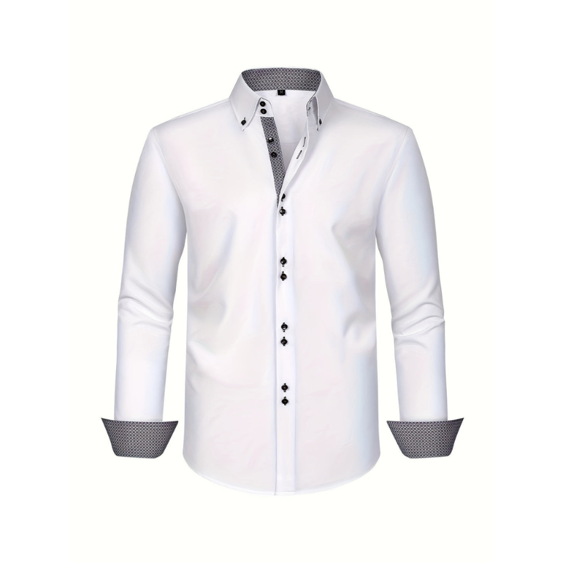 Herrenhemd – Doppelreihiges Design mit Stretch und Kontrastärmel